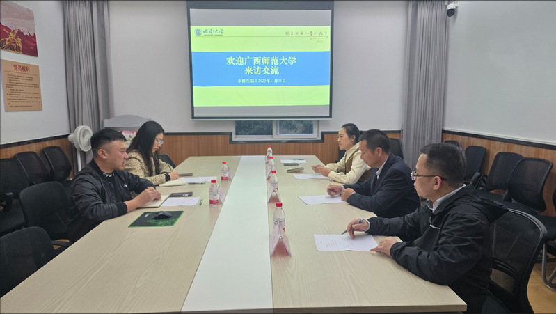 在西南大学,双方围绕智能教学平台“西小智”建设、专业知识图谱构建及智慧课程运行机制等内容展开深入交流。西南大学重点分享了其在智慧课程体系建设、跨学科知识图谱开发、虚拟仿真平台融合等方面的实践经验,特别是在人工智能赋能教学、课程资源动态共享、个性化学习路径支持等方面的具体举措,为我校推进相关建设提供了有益借鉴。