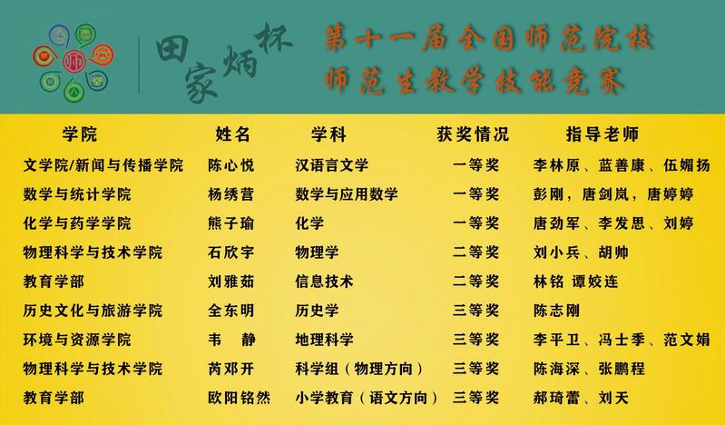 近日,第十一届“田家炳杯”全国师范院校师范生教学技能竞赛在浙江师范大学圆满落幕。我校参赛选手凭借扎实的专业功底、精湛的教学技能和良好的综合素养,在此次高水平赛事中表现优异,共获得一等奖3项、二等奖2项、三等奖4项,充分展现了我校师范生培养的丰硕成果。